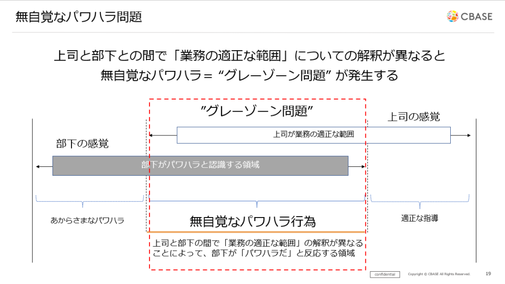 上司にとっては業務の適正な範囲での指導のつもりでも、部下にとってはパワハラと受け止められる領域があるという内容ですが本人に悪意がないからこそ、「周囲も指摘しづらく、組織として実態をつかみにくい」といった特徴があるため、対策を難しくしています。