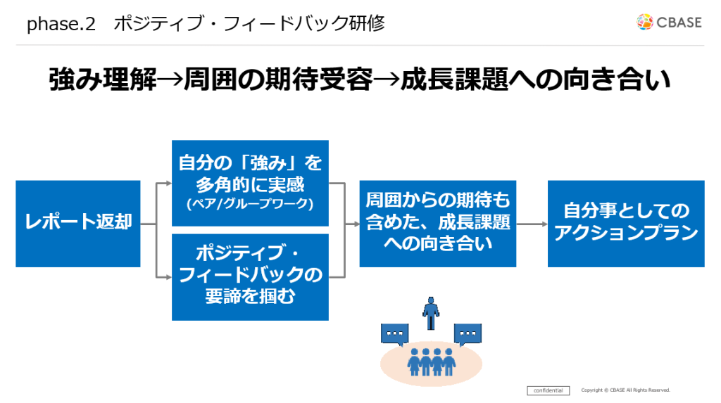 ここで360度フィードバックが有効なのは、周囲からの声を“批判や攻撃”ではなく、“自分を知るための材料”として届けやすい点にあります。指摘だけなく、強みの承認と期待を含めて本人に伝えることが重要です。